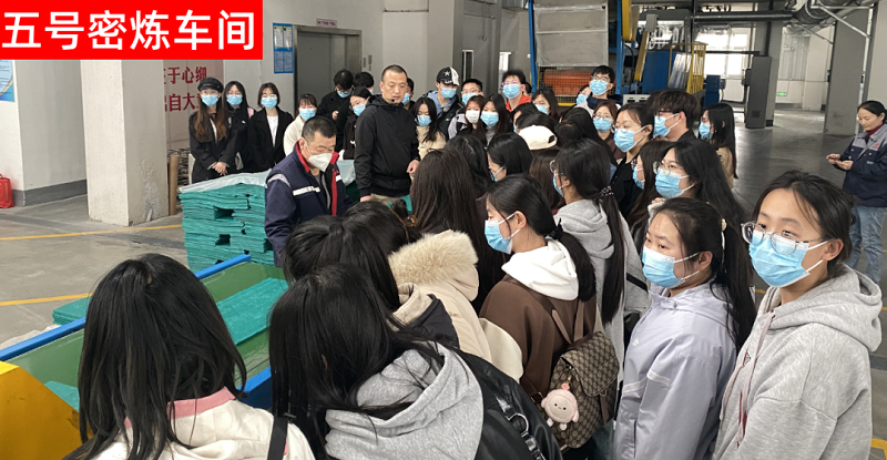 參觀團分成三組分別參觀了我公司的技術研發中心,新建三號制品車間、五號密煉中心車間,并在四樓電教室觀看了我公司的宣傳片、聽了廠歌,雙方就管理問題進行了現場互動。參觀完畢學生們體驗了員工餐。